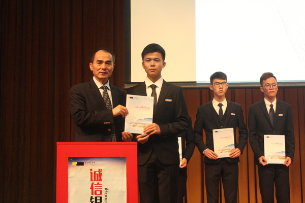 诚信活动回顾短片后,赵东福点亮诚信之光——启动“I honest”活动。