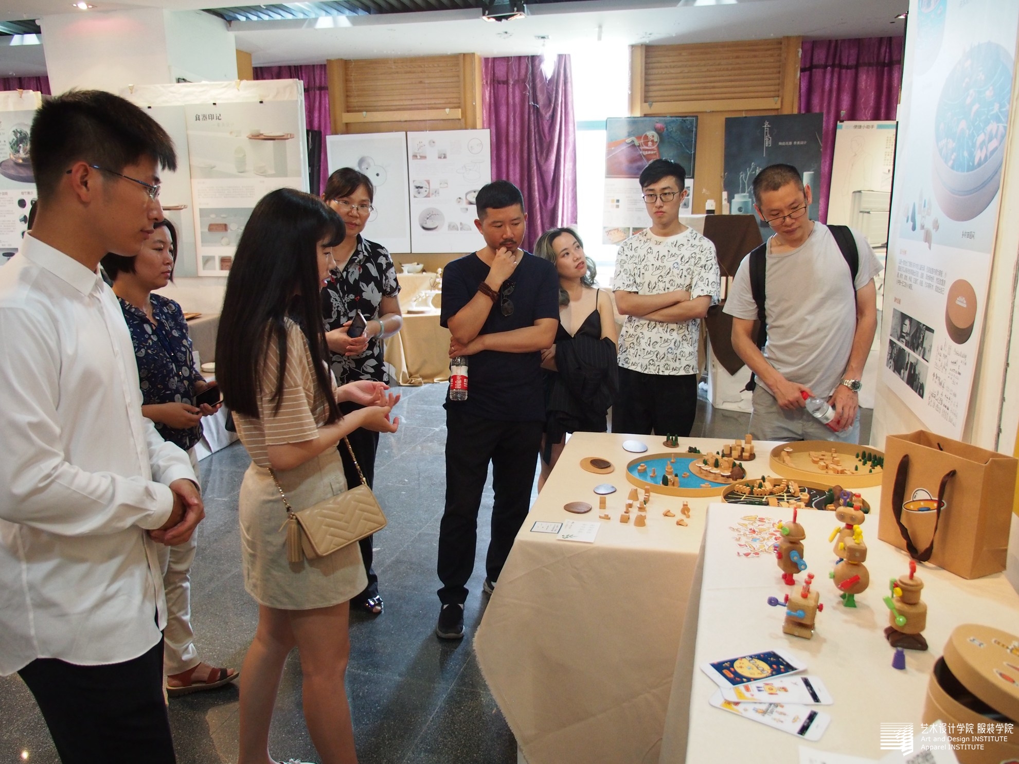 参观工业设计/产品设计2017毕业设计展览,了解高考招生录取改革的相关情况,了解设计类专业对美术专业基础的素质要求等,学院党委副书记、工业设计系主任、本专业应届毕业生、杭七中校友等一行十余人一起参观、座谈。