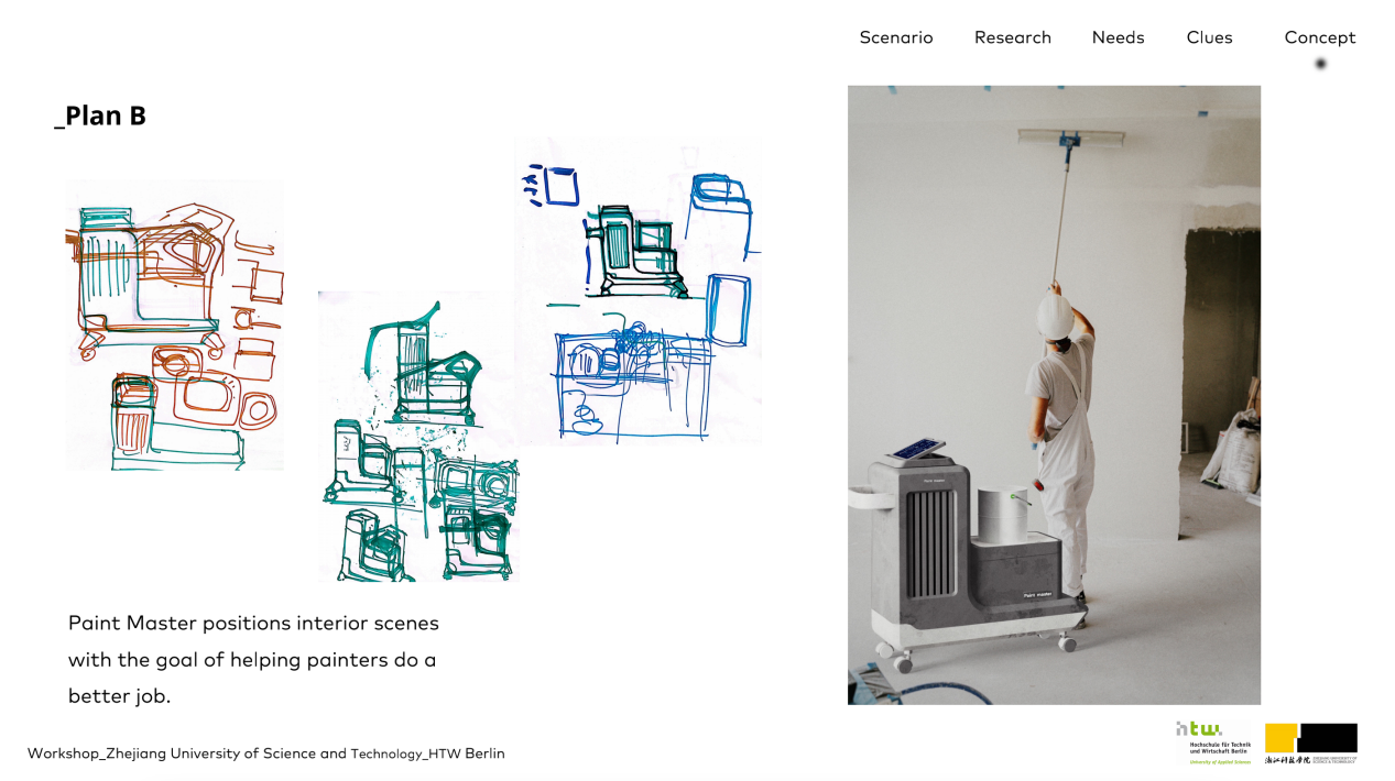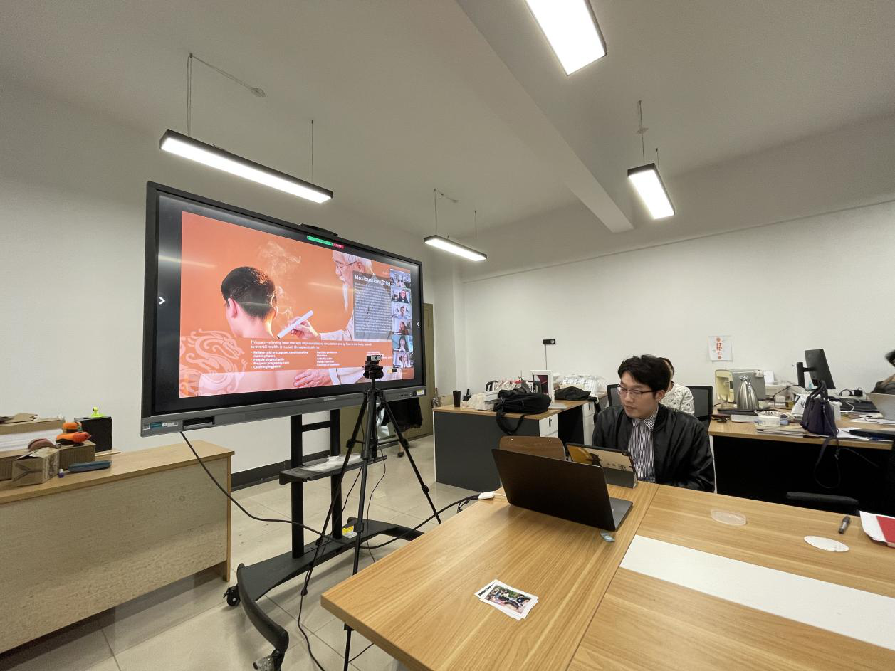 教师裘航、朱吟啸、魏杭帅、张叶知共计六位老师协助指导和翻译。共有5名来自HTW工业设计专业的学生和20名我校工业设计系的学生参加了此次主题为“智能+暖”的设计项目。在三周内,双方学生以小组形式紧密合作,在线确定设计方向,接受Katrin Hinz院长和Bianca Koczan博士关于设计思维和方法的指导训练,高效运用Miro等在线软件进行头脑风暴和创意迭代,在教师团队的指导下不断完善产品方案。在此次学习交流中,师生们放弃了节假日的休息时间,克服时差问题,高效、高质量地完成了五款设计方案,分别是“Very Hot Banana”小组的MOXA智能艾灸套装、“SUNLIGHT”小组的救援小蟹、“Gold Miners”小组的智能油漆墙体烘干机、“Black Hole”小组的智能失温救助装置以及“Kartoffelpuffer in a Hot Pot”小组的厨房墙壁油污清理器。