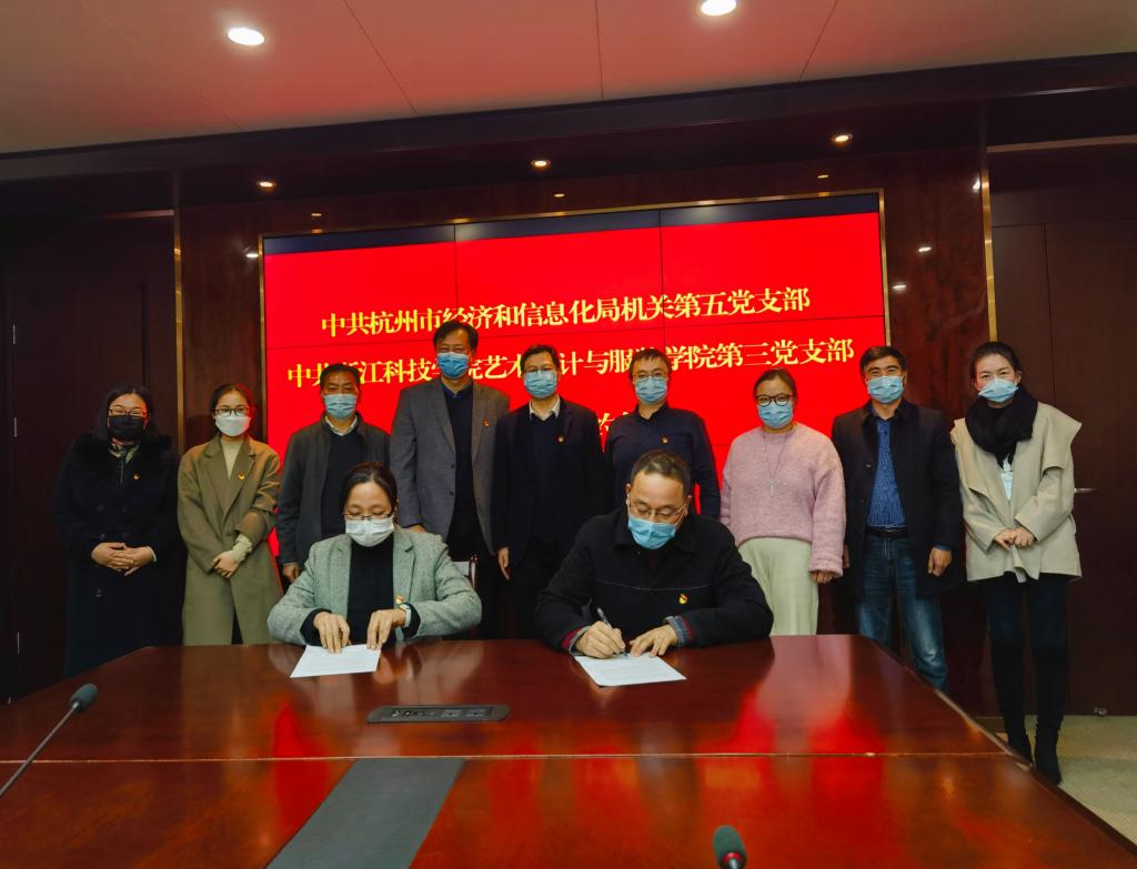 党委书记詹俊、院长郑林欣、俞晓群副院长、教工第三党支部委员参加了签约仪式。签约现场,双方分别介绍了各自支部的概况以及前期双方政校合作情况,共同希望以此为开端,以支部建设为纽带,加强党建共建,发挥各自支部的优势,促进学习交流,资源共享,推进政、校、企进一步合作,共同致力高质量发展,不断提高人才培养质量,为实现共同富裕示范区建设添砖加瓦。
