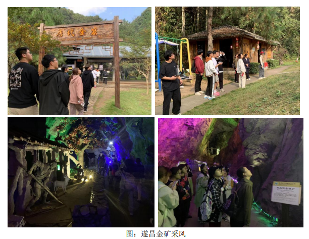 10月16日,同学们从安吉校区出发,历时四小时来到丽水市遂昌县。当天首先前往了遂昌金矿国家矿山公园进行采风考察,遂昌金矿自唐代以来有1400余年采冶历史,是国内唯一保持开发的千年古金矿。矿区开采千年,坍塌时有发生,矿产资源从丰盈到枯竭,矿洞从兴盛到毁灭,发人深省。同学们走过幽深的明代金窟、险峻的唐代金窟,看着岩壁上一个又一个深浅不一的坑洞,感叹于先人的智慧与艰辛。
