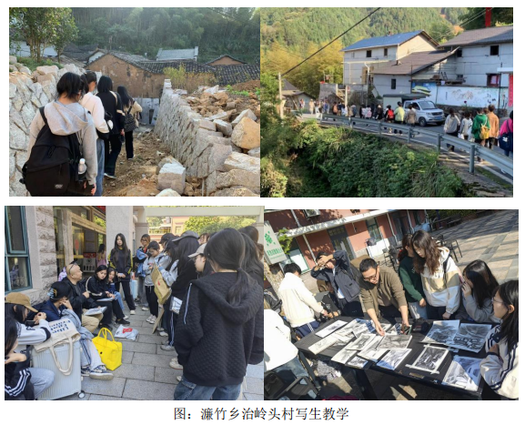 10月18日,同学们深入濂竹乡治岭头村,实地考察古村落、古树群,从乡土氛围中汲取艺术灵感,深刻领悟习近平总书记提出的“绿水青山就是金山银山”的发展理念。濂竹乡享有“古树之乡”的美誉,既有保存完整的千年古仓、明清祠堂等古建筑,又有省级“非遗”布衣拳、抹黑脸、巧剪纸等古村民俗,使同学们从民间社会生活中感受传统艺术风采,领略乡村独特魅力。学生们纷纷表示,本次采风写生活动不仅提高了他们观察自然和感悟生活的能力,而且启迪了艺术源于生活的创作思维。