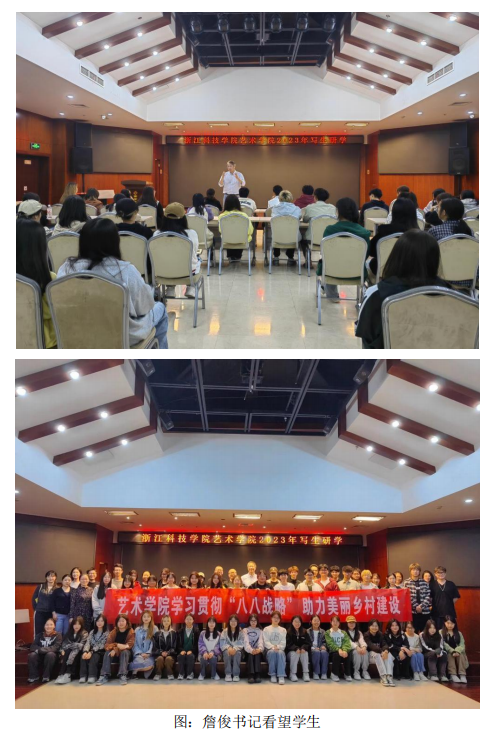晚上,学院党委书记詹俊携新引进青年教师来看望同学们,了解课程实施情况。詹俊书记勉励同学们传承红色基因,厚植爱国情怀,弘扬时代精神;希望同学们能够认真学习,担当时代责任,助力美丽乡村建设。