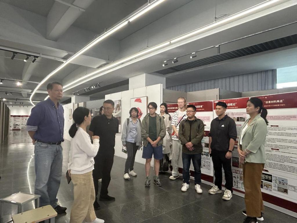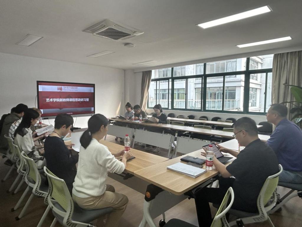在立德树人与专业人才培养同向同行以及课程教学改革探索方面的耕耘所获,展现了学院以思政为引领、持续提升创意设计人才培养质量的教学成果。赵东福书记莅临指导,对学院进一步做好育人及课程思政教学工作做出了重要指示,提出了宝贵的意见和建议。学院以“艺科融合·五育并举”课程思政教学研究中心为依托,积极发挥思政育人的特色优势,同期开展“新教师课程思政研学营”活动,组织新教师参观展览、参与思政研讨活动,向他们讲解课程思政内涵建设与改革创新方法等,并专门制作优秀课程案例汇编图册十余本,提供给新教师学习,助力新教师成长。在研讨活动中,詹俊书记和郑林欣院长与新教师进行了座谈,强调了学院思政育人工作的重要意义,并表达了对新教师积极投身课程思政教学建设、成长为学院育人骨干、取得丰硕育人成果的殷切期待。